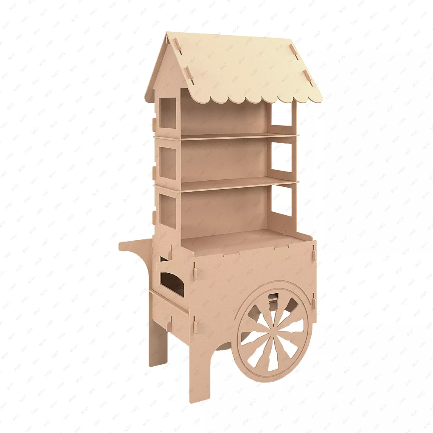 Exhibidor de Madera MDF Tipo Carreta con Techo