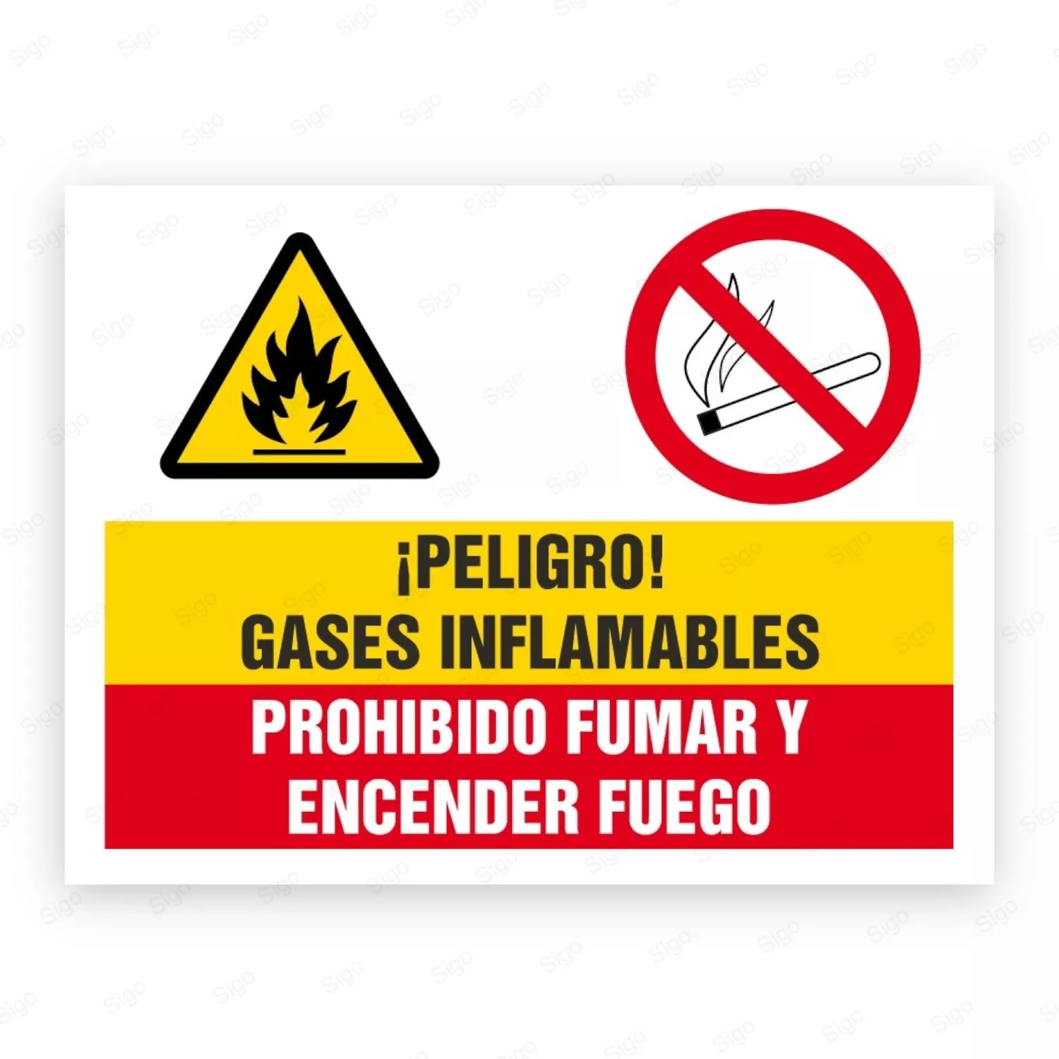 Señales Combinadas - ¡Peligro! Gases Infamables Prohibido Fumar Y Encender Fuego |Cod. CB-10