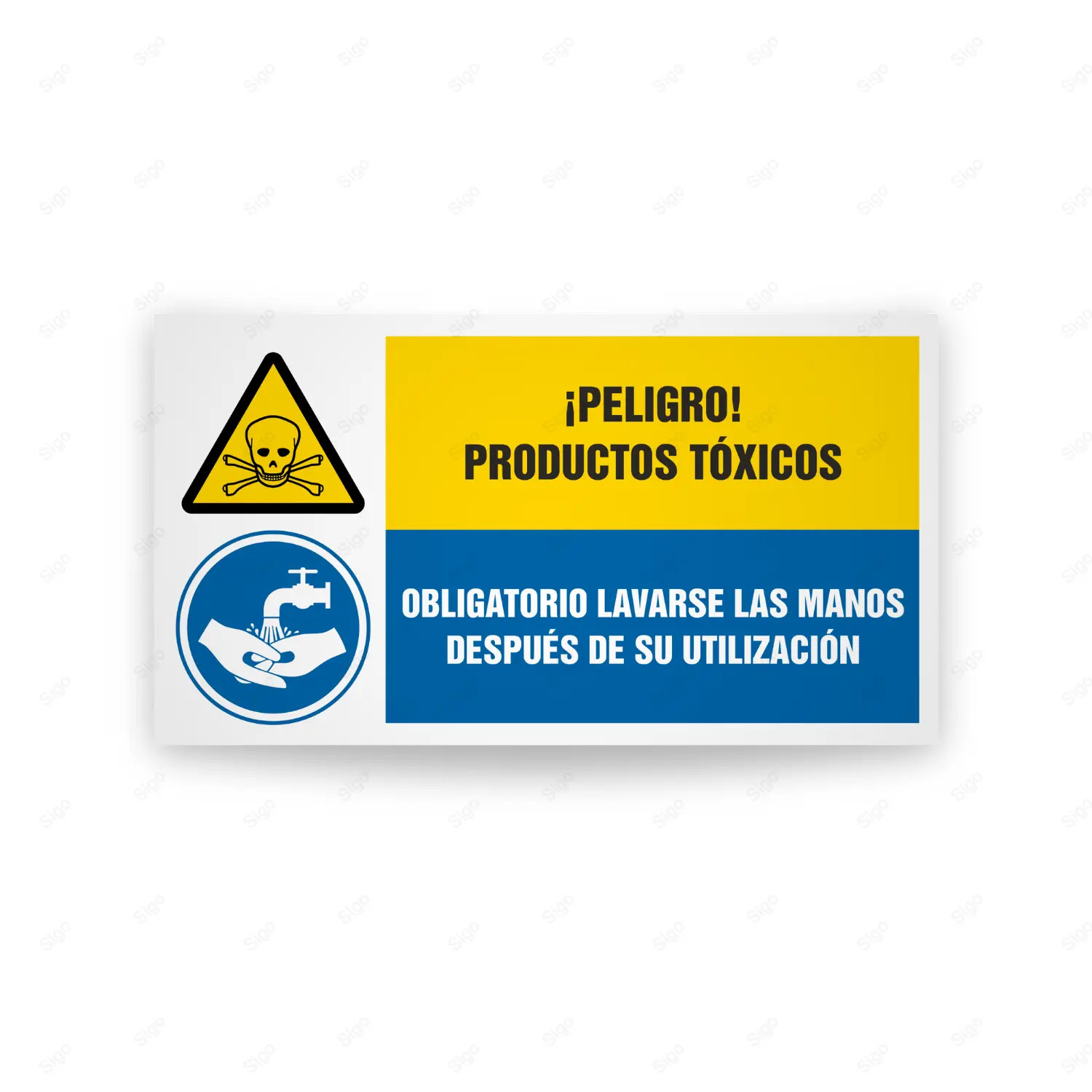 Señales Combinadas - Peligro Productos tóxicos Obligatorio Lavarse Las Manos Despues De Su Utilización| Cod. CB-152