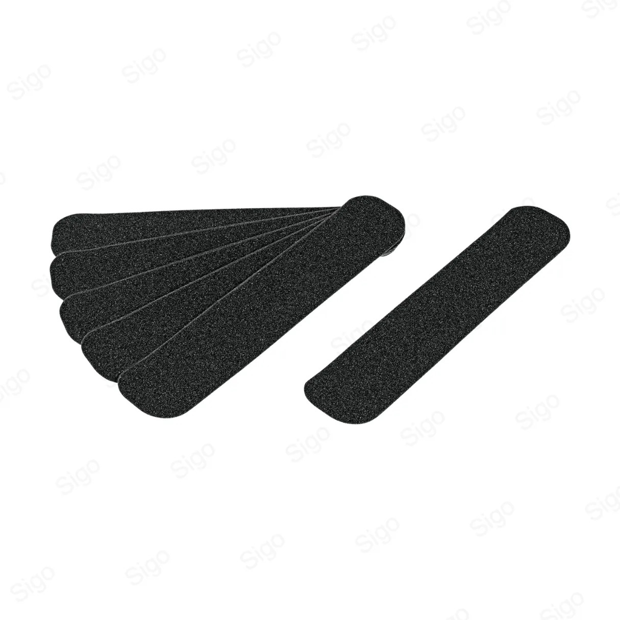 Solución definitiva para aumentar la seguridad en tus espacios: tiras antideslizantes o antiderrapantes en color negro con dimensiones de 50mm (5 cm) de ancho y 23 cm de longitud. Fabricadas con grano de óxido de aluminio y un adhesivo acrílico resistente al agua, son ideales para cualquier área con tráfico de calzado, garantizando gran resistencia al deslizamiento. Paquete de 6 unidades.