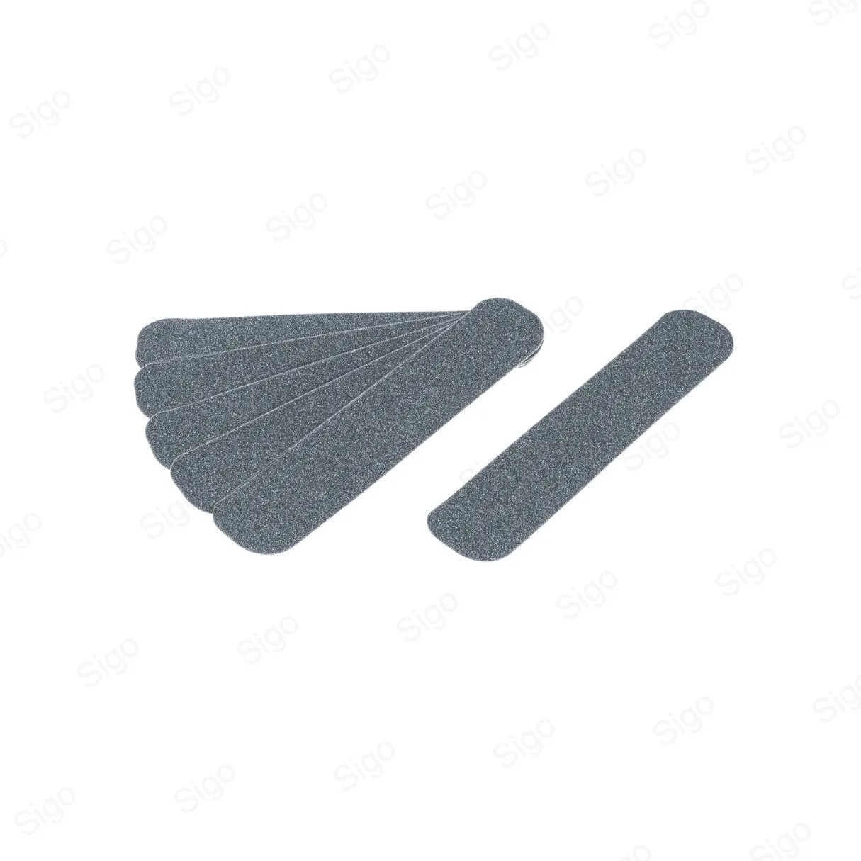 Solución definitiva para aumentar la seguridad en tus espacios: tiras antideslizantes o antiderrapantes color gris con dimensiones de 50mm (5 cm) de ancho y 23 cm de longitud. Fabricadas con grano de óxido de aluminio y un adhesivo acrílico resistente al agua, son ideales para cualquier área con tráfico de calzado, garantizando gran resistencia al deslizamiento. Paquete incluye 6 unidades.