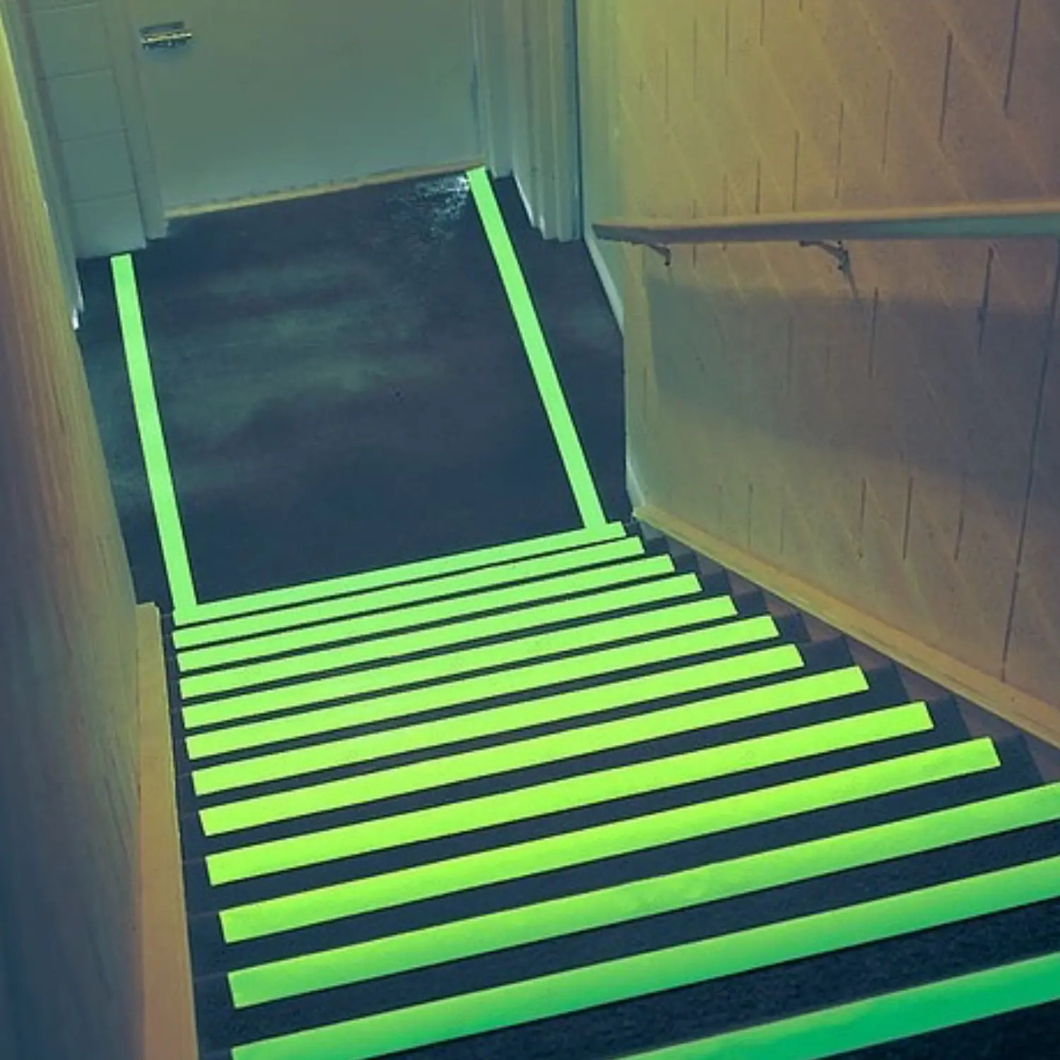 • Propiedad fotoluminiscente: La cinta brilla en la oscuridad, ideal para señalización de seguridad y orientación en áreas de baja visibilidad.