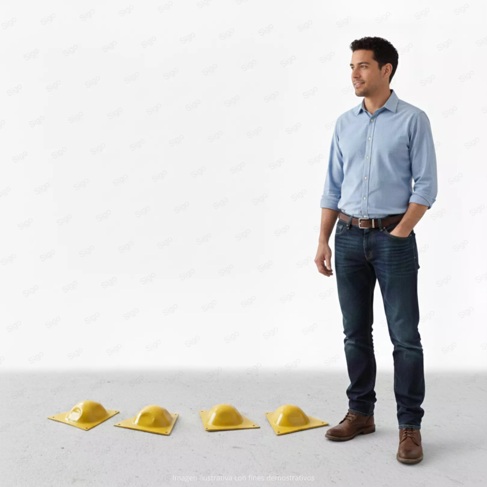 La Boya Metálica de SIGO, mejorada para una máxima eficiencia, combina calidad, durabilidad y diseño inteligente. Hecha con lámina de acero troquelada y una pintura amarilla de alta resistencia, esta boya no solo mejora la visibilidad vial, sino que también resiste las demandas del uso intensivo y las condiciones climáticas adversas.