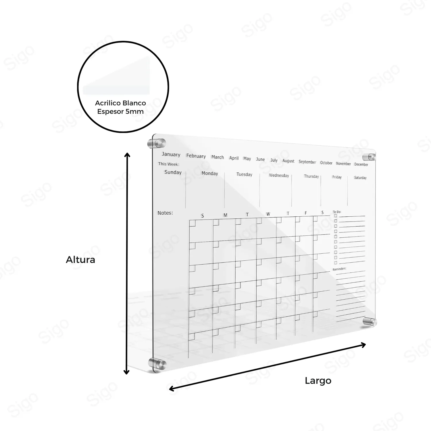 En SIGO, nos dedicamos a ofrecer productos que no solo cumplen con los más altos estándares de calidad, sino que también promueven prácticas sostenibles. Nuestro Calendario Organizador de Acrílico Transparente es una muestra de nuestro compromiso con la innovación y el respeto por el medio ambiente.