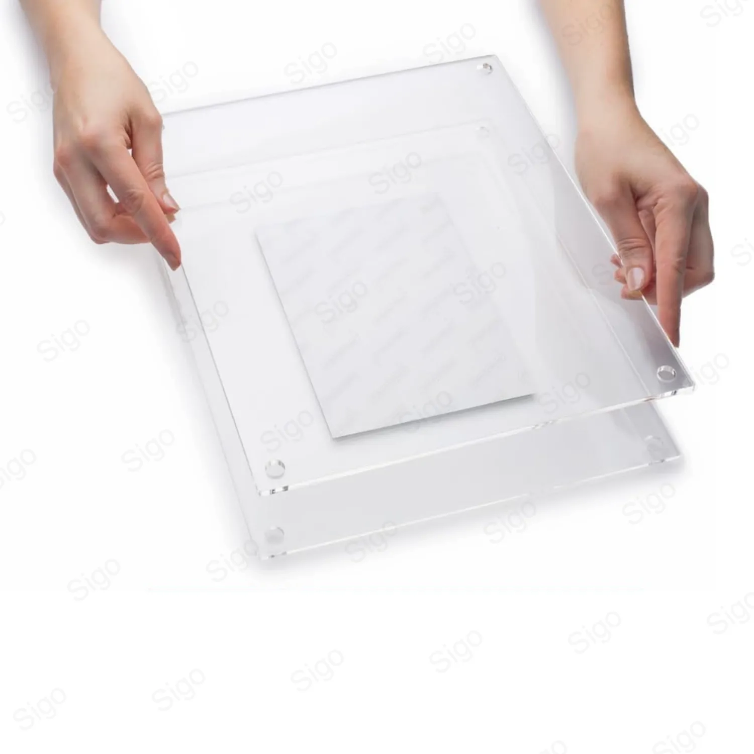 SIGO se enorgullece de su enfoque innovador en el diseño de productos, combinando funcionalidad con estética moderna. Nuestro Marco de Acrílico + Foto Doble es un ejemplo claro de este compromiso, ofreciendo una solución de exhibición que es tan práctica como bella.