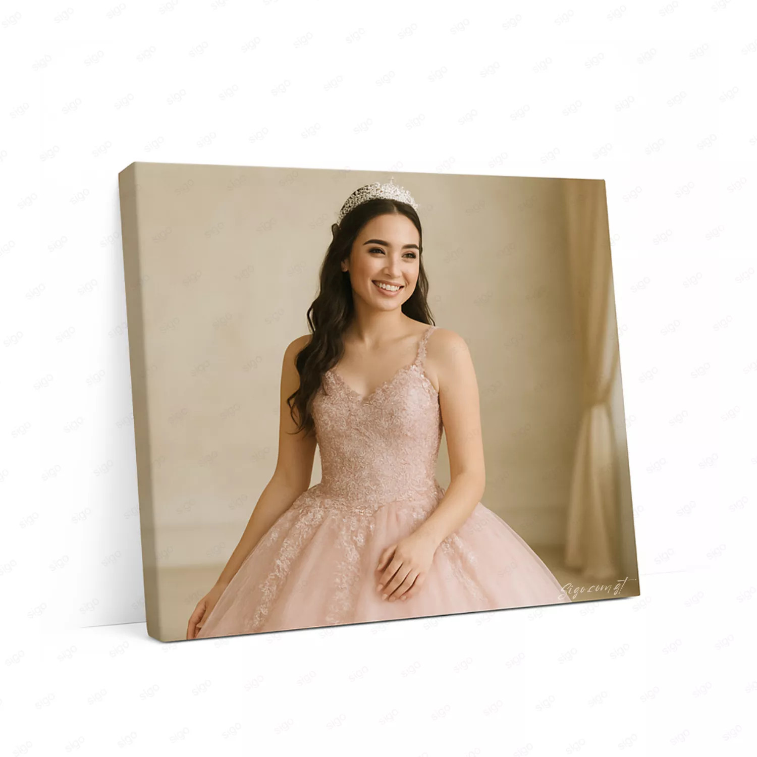 Impresión en Cotton Canvas Recuerdo Quince Años ideal para crear cuadros decorativos con acabado artístico y alta calidad fotográfica. Su textura tipo lienzo realza los detalles y colores para un resultado elegante y duradero. Incluye bastidor de madera y excedente para tensado profesional.