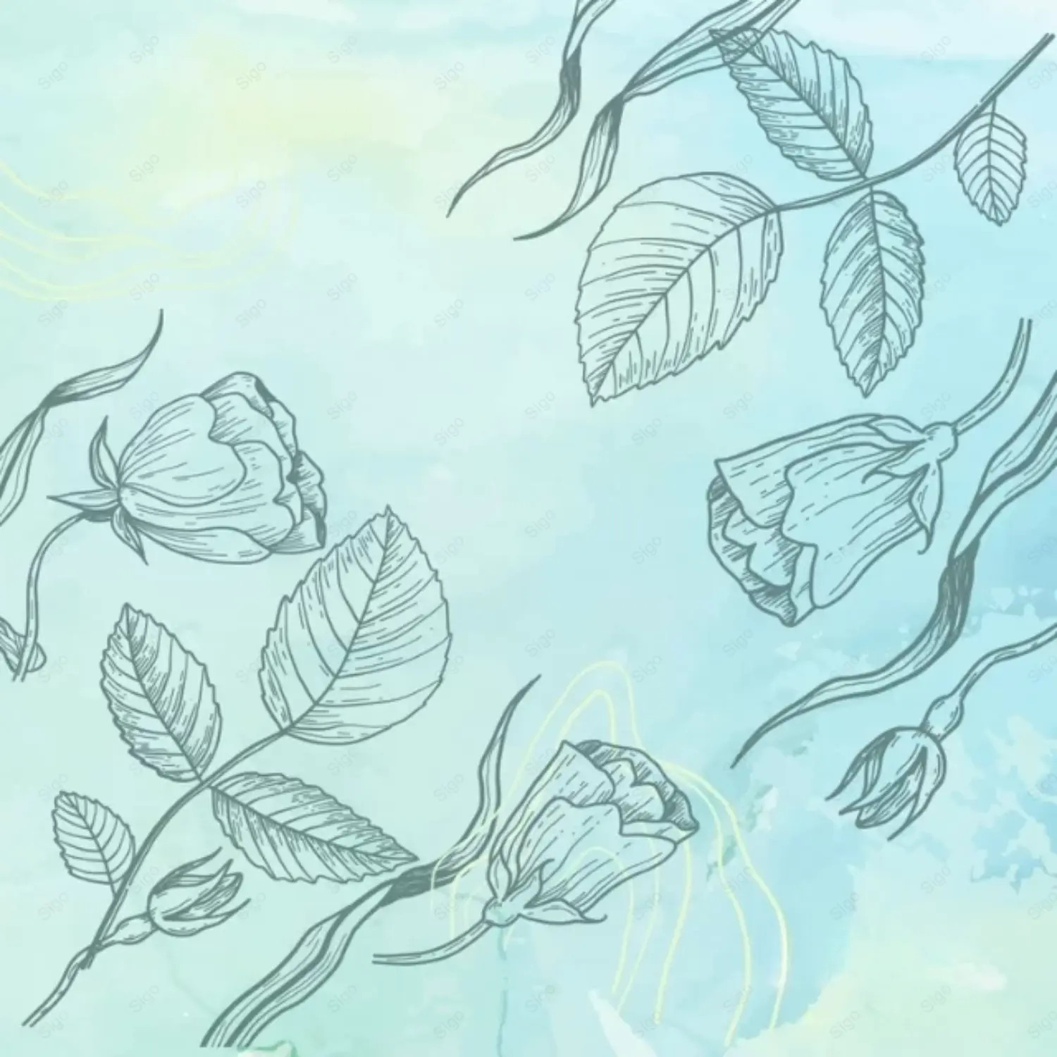 Mural Decorativo de Pared en Vinilo - Patrón Floral Celeste
