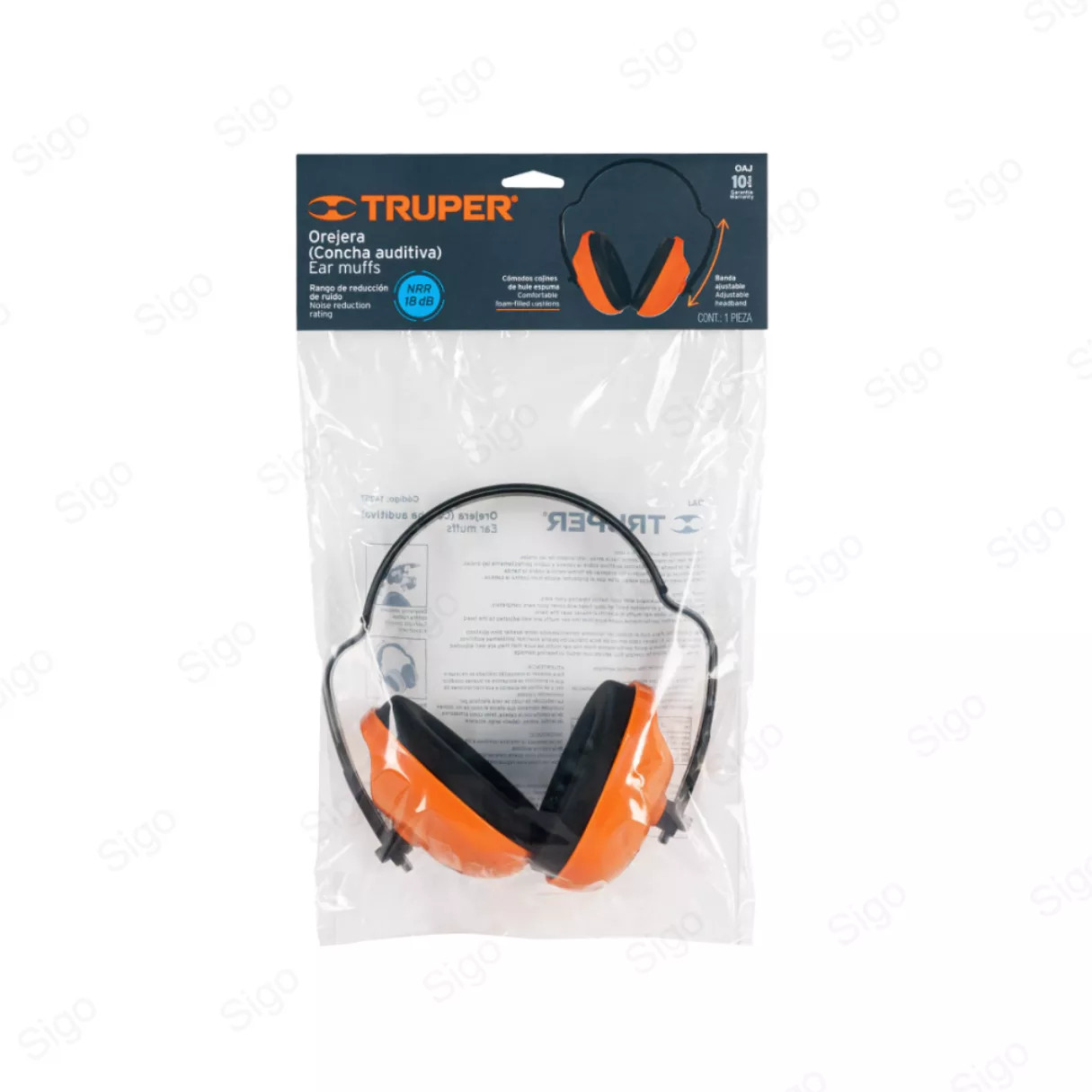Orejeras ajustables de la marca Truper ofrecen comodidad y protección auditiva superior. Con un arnés de nylon, copas de ABS, diadema de POM y almohadillas de poliuretano, aseguran un ajuste personalizado y confort prolongado. Ideales para entornos ruidosos, reducen el ruido en 18 dB.