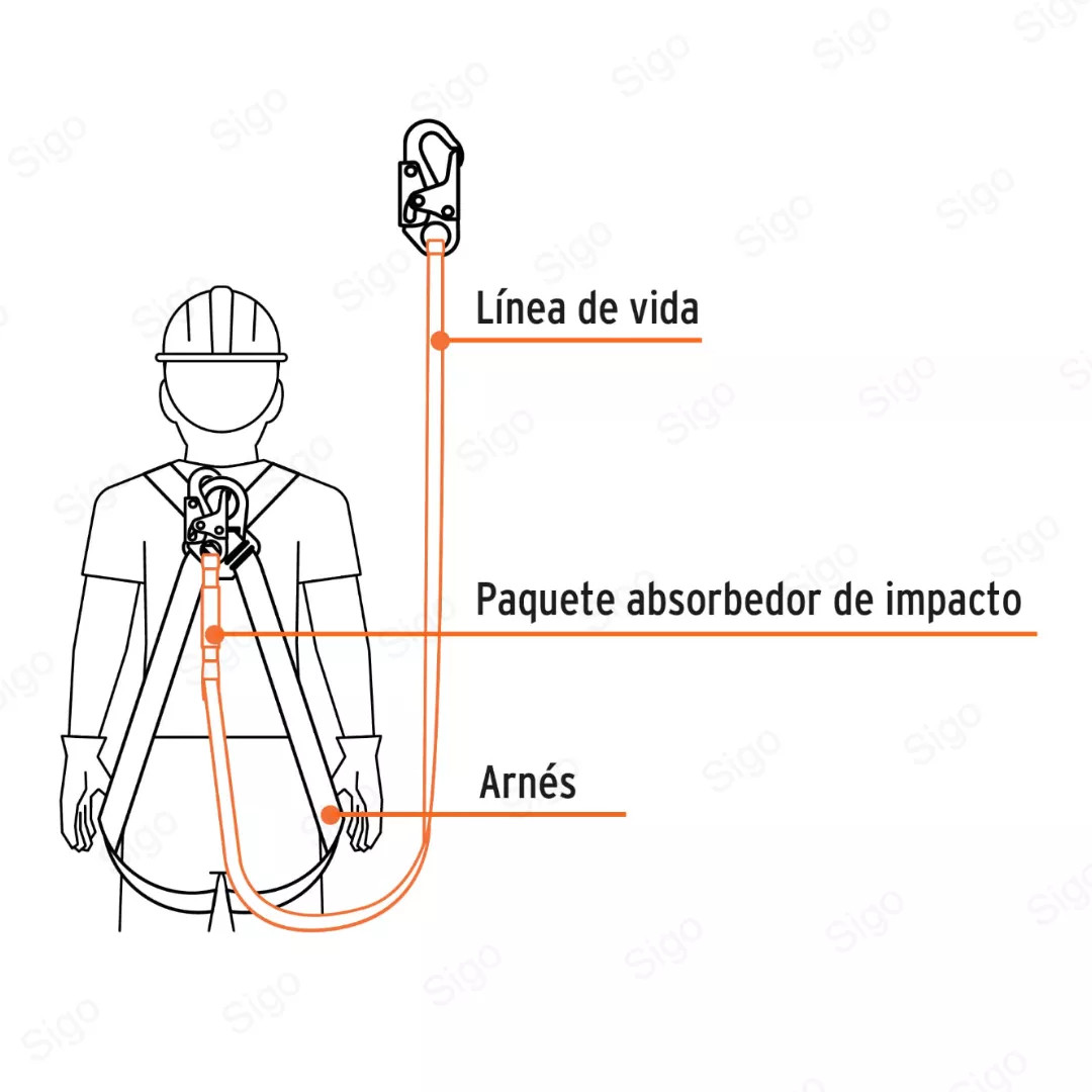 Este producto es esencial para la seguridad en trabajos de altura, ofreciendo una solución confiable para mitigar el riesgo de caídas. Con una longitud total de 1.8 m y capacidad para extender el paquete amortiguador hasta 1.1 m, es ideal para una amplia gama de aplicaciones industriales y de construcción.
