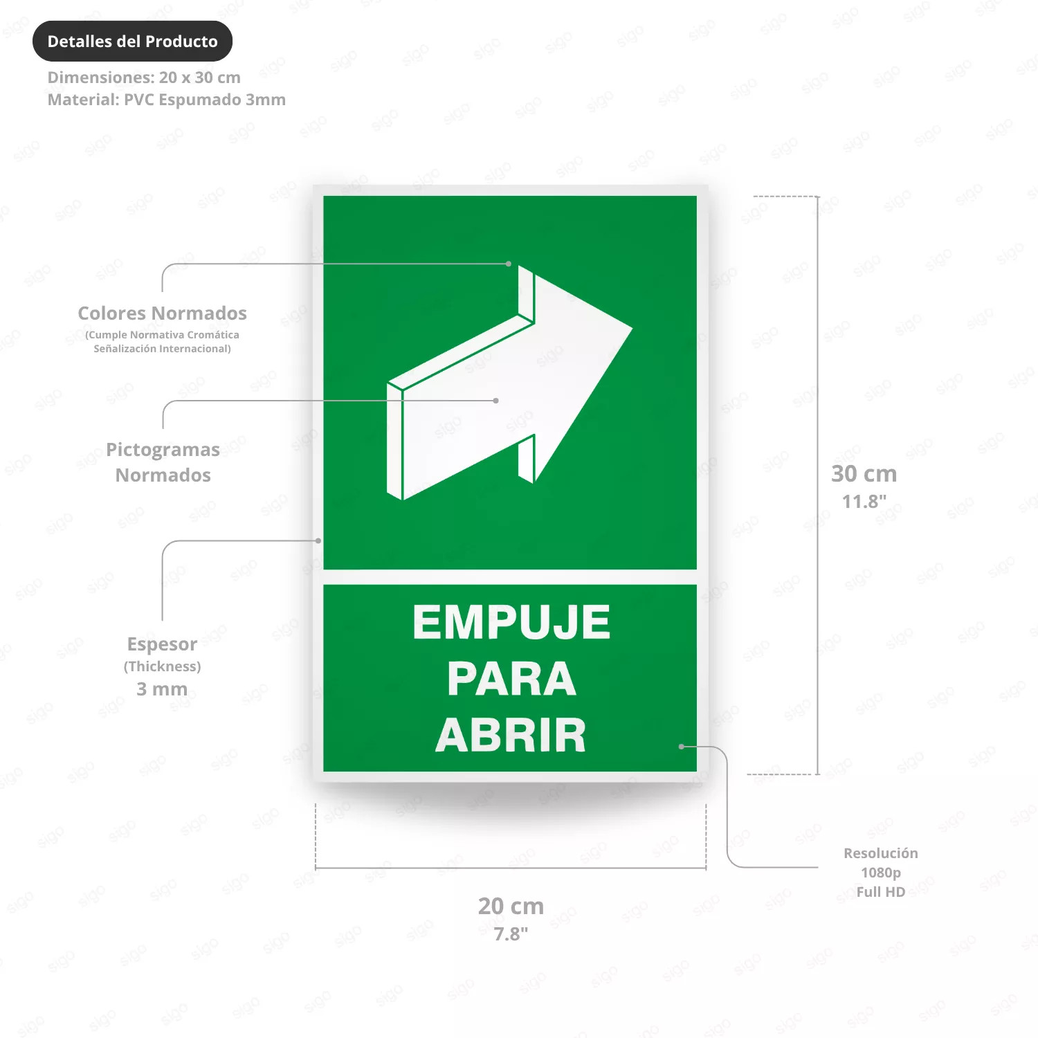 Nuestro Rótulo de Ruta de Evacuación - Empuje Para Abrir | EV-050, tiene un propósito fundamental: proporcionar una Guía Clara y Efectiva para dirigir a las personas hacia la salida más cercana en situaciones de emergencia. Estos rótulos de ruta de evacuación desempeñan un papel esencial al comunicar de manera efectiva el camino seguro a seguir en caso de una emergencia, contribuyendo a un ambiente seguro y organizado. Su presencia visual distintiva asegura que todas las personas en su espacio puedan evacuar de manera segura y rápida en momentos críticos.