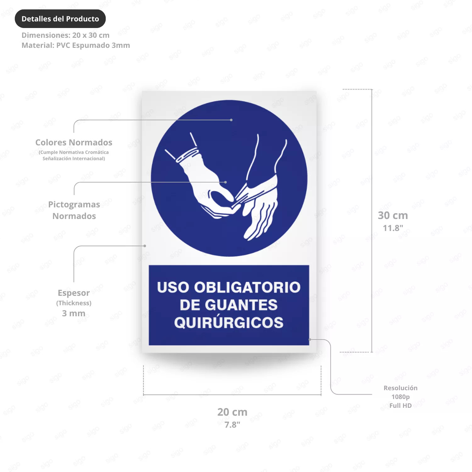 Rótulo de Obligación - Uso obligatorio de guantes quirúrgicos| Cod. OB-139, disponible en diversos materiales. Fabricado según parámetros normativos NRD2 de CONRED. Disponible en varios tamaños. Ideal para oficinas, edificios comerciales, ambientes industriales y más.