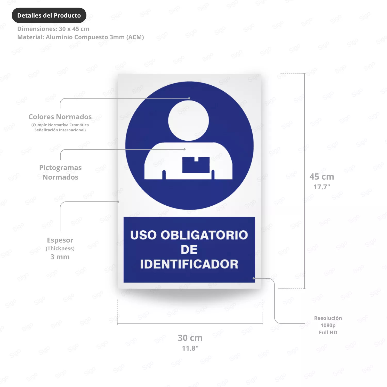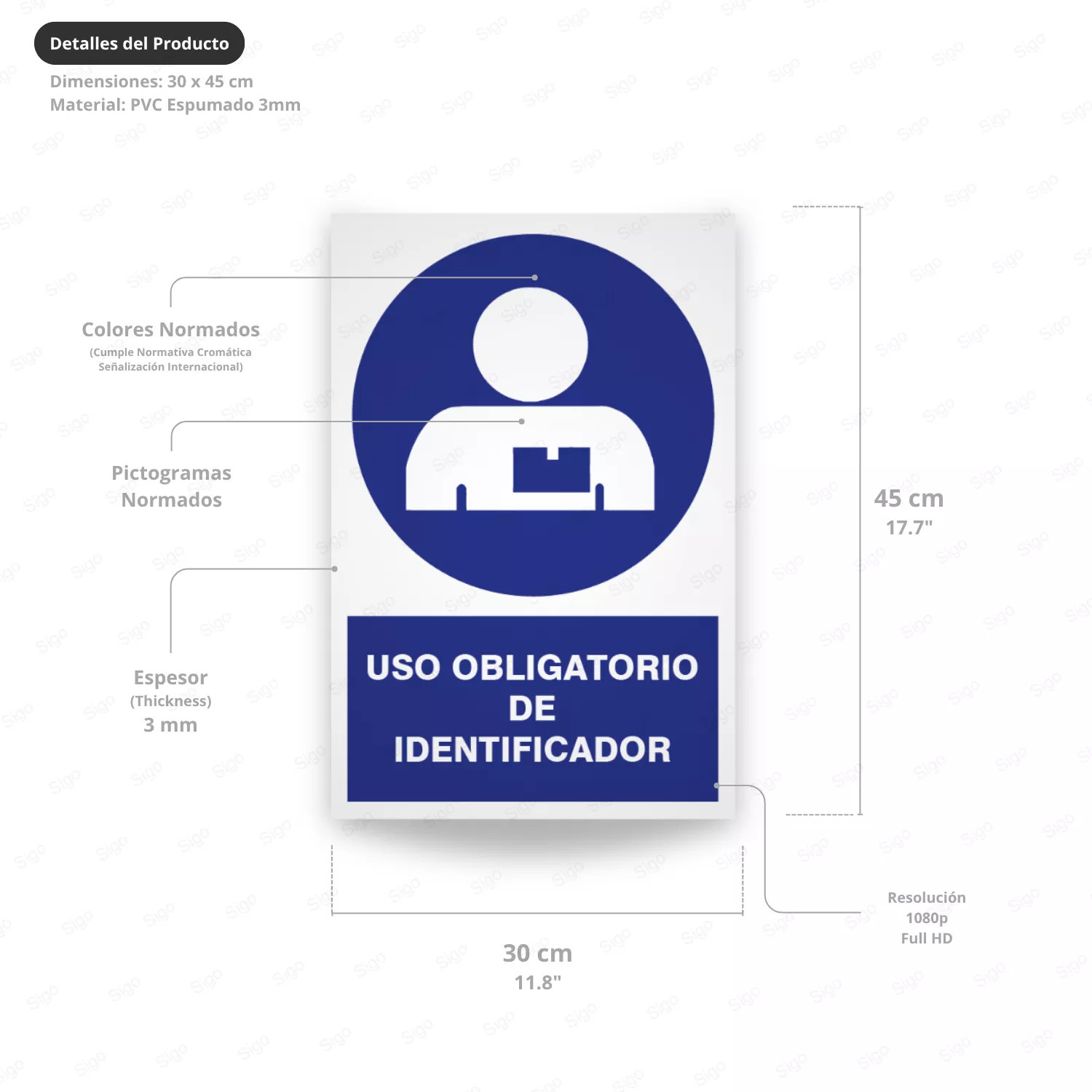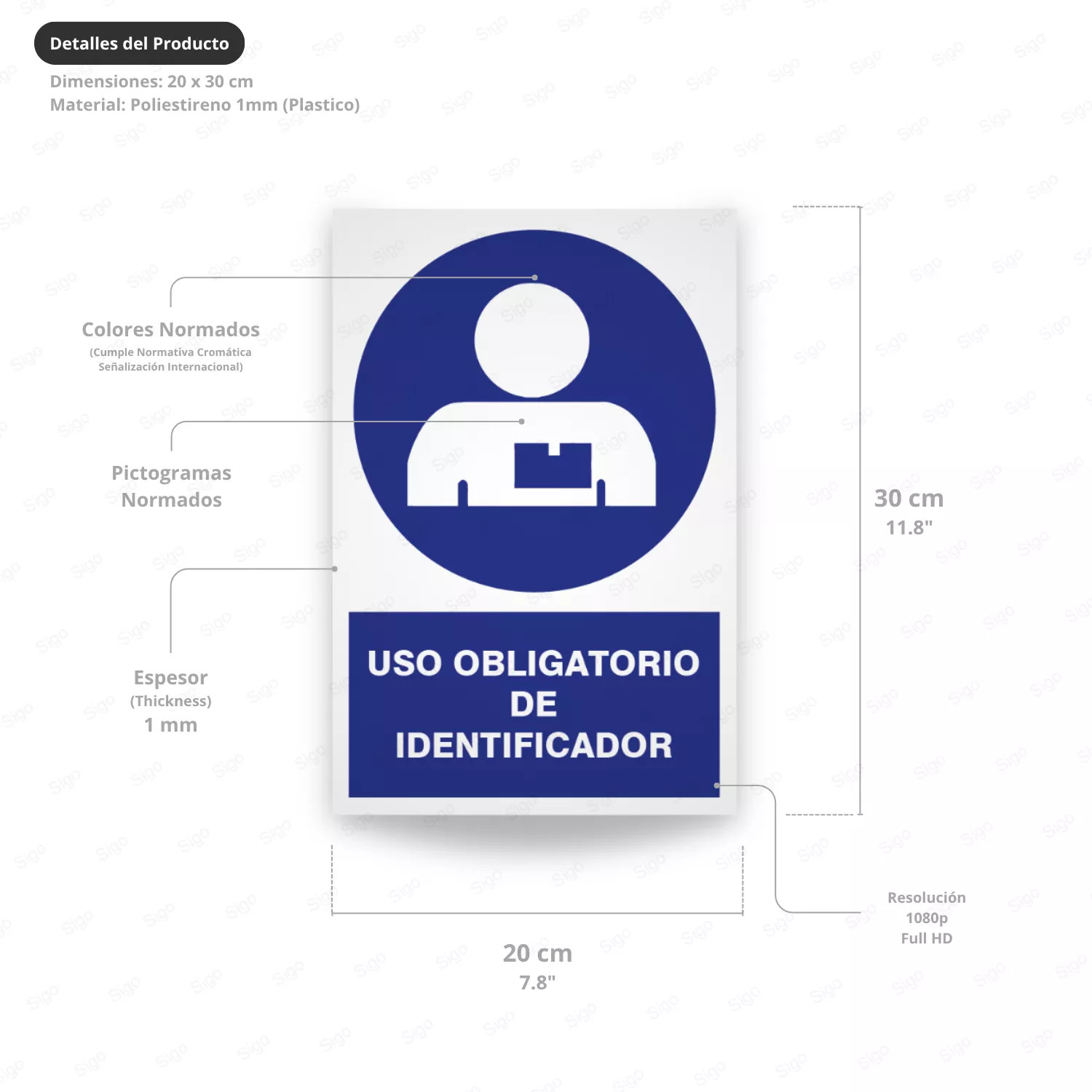Rótulo de Obligación - Uso obligatorio de identificador | Cod. OB-149, es ideal para garantizar el cumplimiento de normativas y mejorar la seguridad en cualquier espacio. Fabricado con materiales resistentes, es perfecto para entornos industriales, comerciales y públicos.