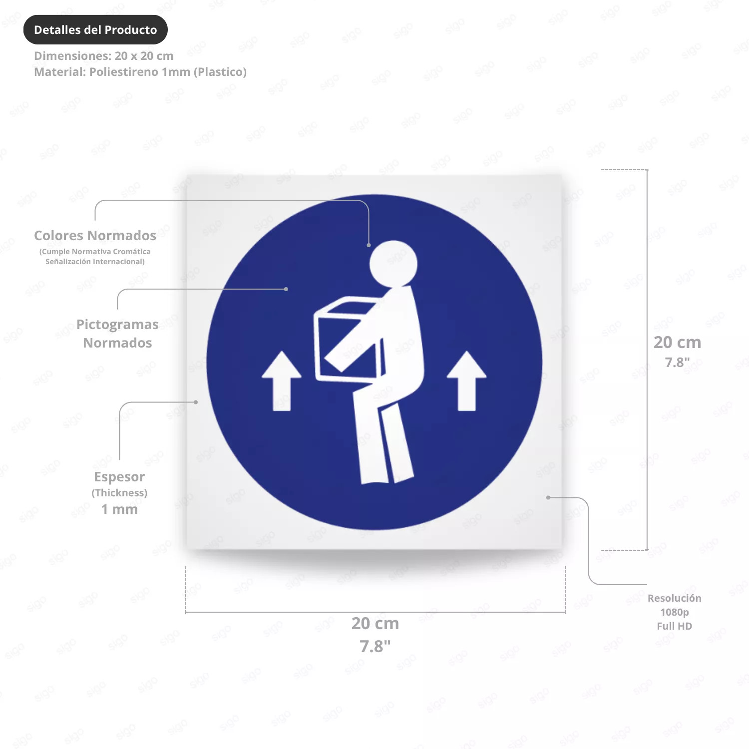 Rótulo de Obligación - Levante y baje peso con las piernas, no con la cintura | Cod. OB-040 es ideal para garantizar el cumplimiento de normativas y mejorar la seguridad en cualquier espacio. Fabricado con materiales resistentes, es perfecto para entornos industriales, comerciales y públicos.
