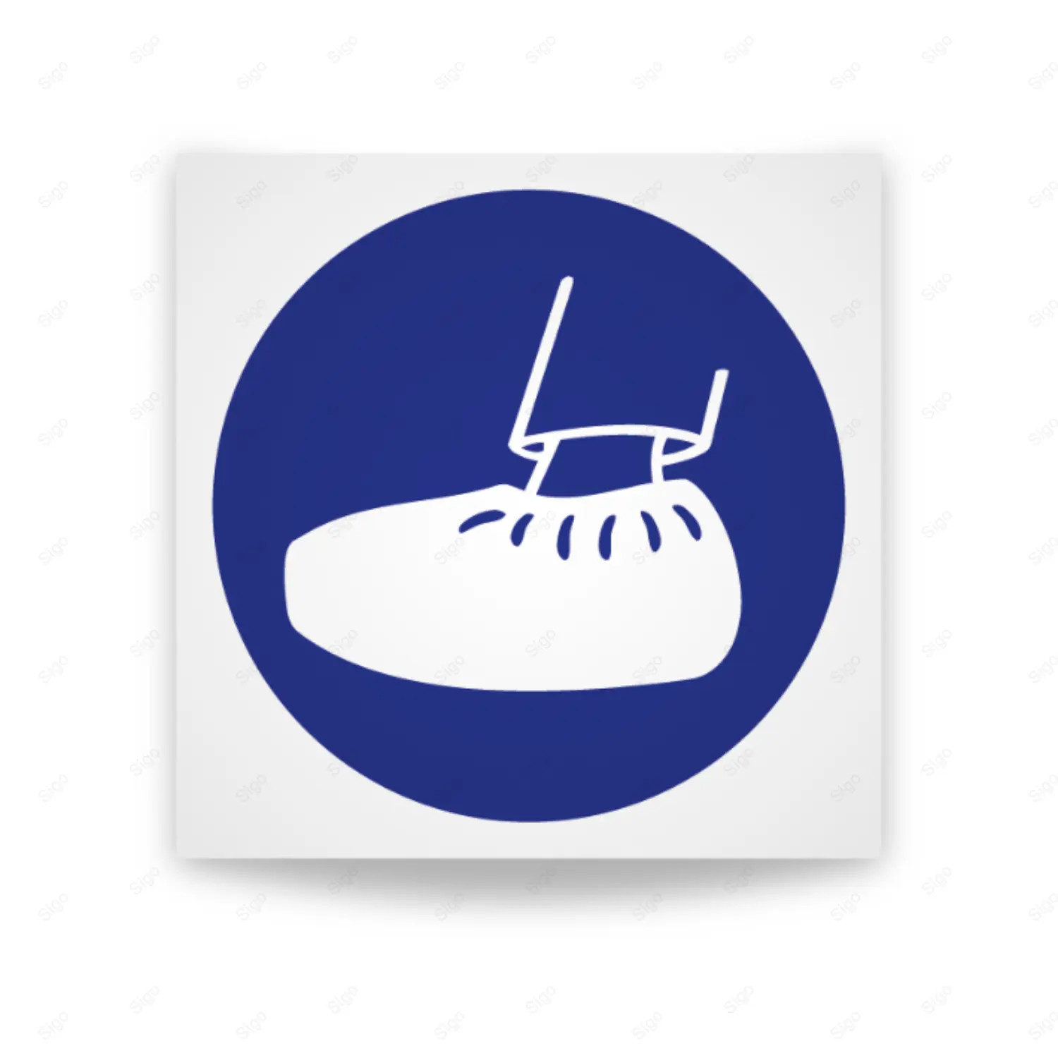 Rótulo de Obligación - Uso obligatorio de protegecalzado | Cod. OB-039 es ideal para garantizar el cumplimiento de normativas y mejorar la seguridad en cualquier espacio. Fabricado con materiales resistentes, es perfecto para entornos industriales, comerciales y públicos.