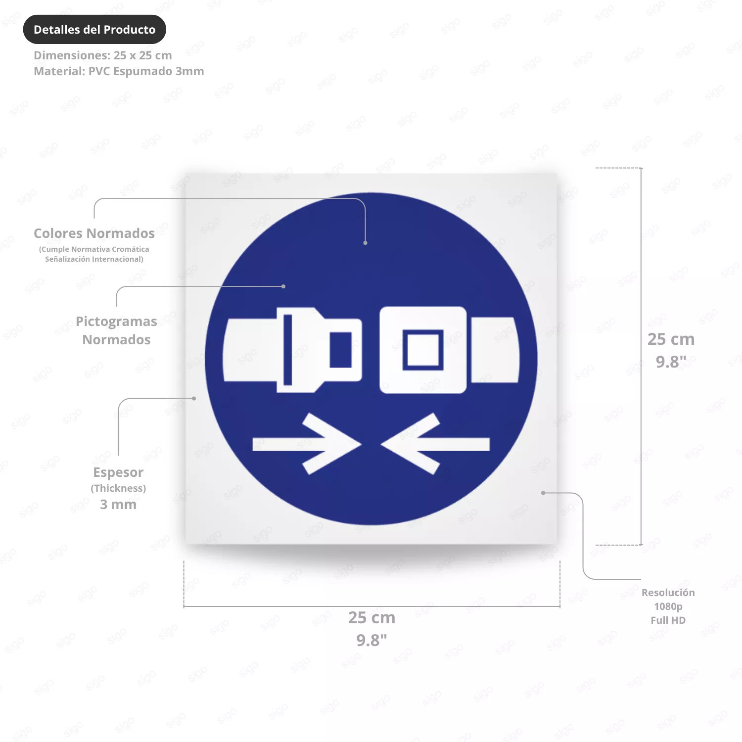 Rótulo de Obligación - Uso obligatorio de cinturon de seguridad | Cod. OB-048 es ideal para garantizar el cumplimiento de normativas y mejorar la seguridad en cualquier espacio. Fabricado con materiales resistentes, es perfecto para entornos industriales, comerciales y públicos.