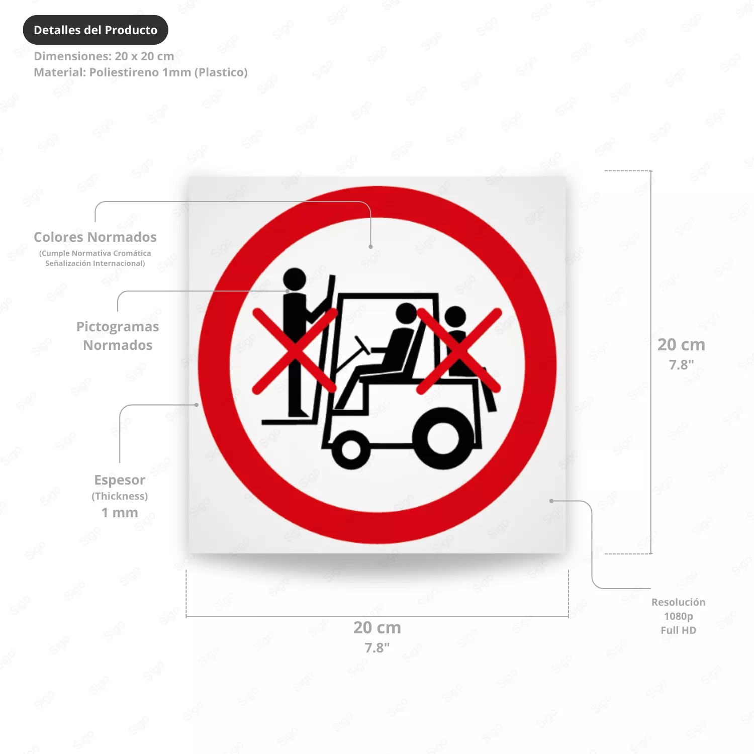 Rótulo de Prohibición - Prohibido trasnportar personas| Cod. PR-018 es ideal para señalar acciones o comportamientos no permitidos en un área determinada. Diseñado para ser altamente visible y duradero, está disponible en varios tamaños y materiales resistentes, garantizando una comunicación clara y efectiva.