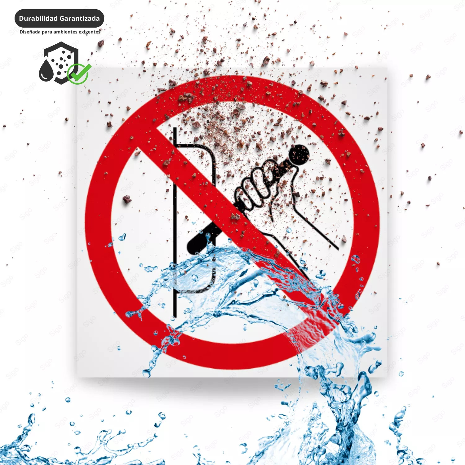 • Diseño llamativo y normativo, asegurando una rápida identificación del mensaje.