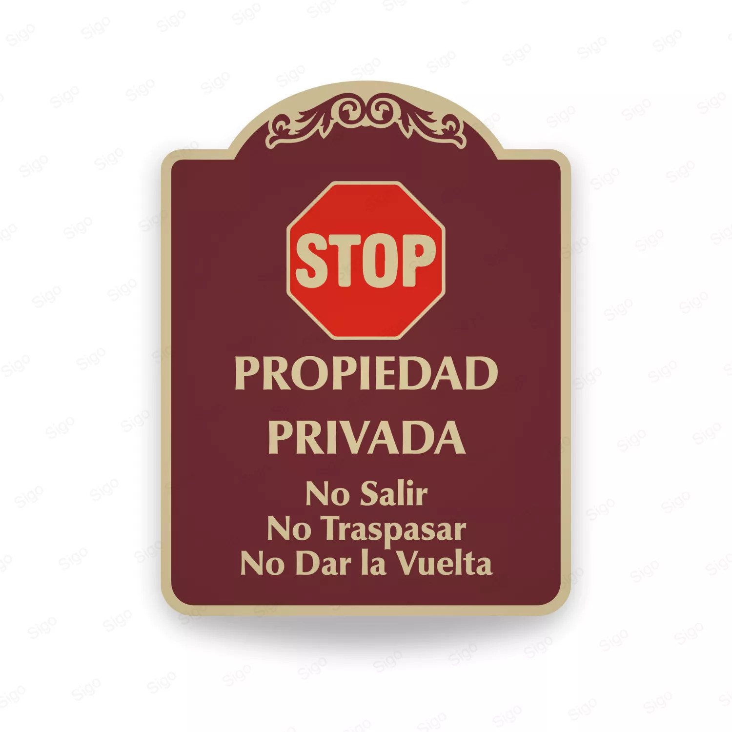Rótulo Vial Residencial - Propiedad Privada, No Salir, No Traspasar, No Dar la Vuelta