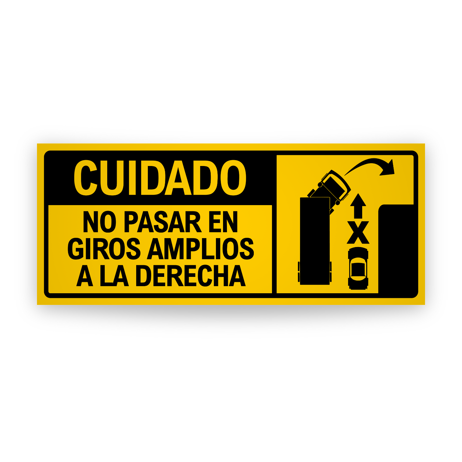 Rótulo de Transporte Pesado - Cuidado No Pasar en Giros Amplios a la Derecha
