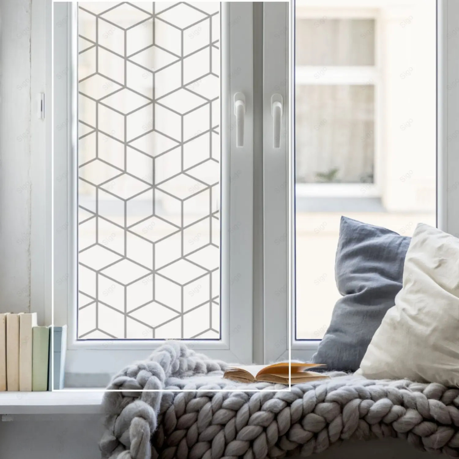 Sandblast Decorativo Impreso para Ventana - Patrón Cubos