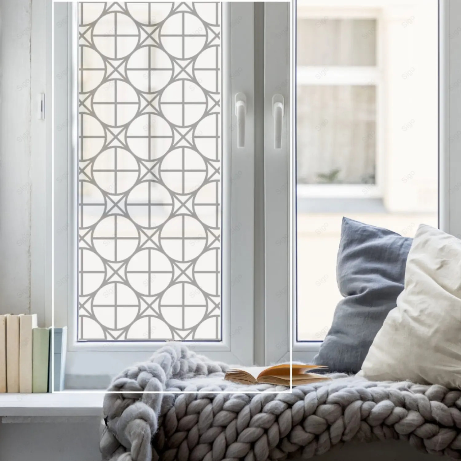 Sandblast Decorativo Impreso para Ventana - Patrón Azulejo circular