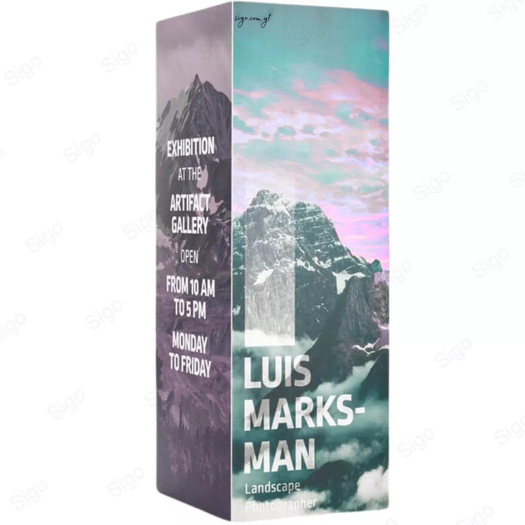 Da un paso adelante en tu publicidad con nuestro Tótem Publicitario de 4 Caras. Contacta con nosotros para empezar a destacar en tu próxima gran presentación.